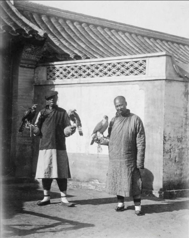 清末老照片,如今每一张都是弥足珍贵。图中是两个玩鹰的清朝男子,他们都是八旗后裔,祖上也曾骁勇善战,是大清的“国之柱石”。清中期以后沦落为国家寄生虫,到了清末已经手好闲,玩物丧志。他们不是提笼架鸟,就是吞云吐雾。不是泡茶馆吹牛逼,就是逛戏棚撩妹子,靠着祖宗的军功度日。有的入不敷出,连宅子都卖了!