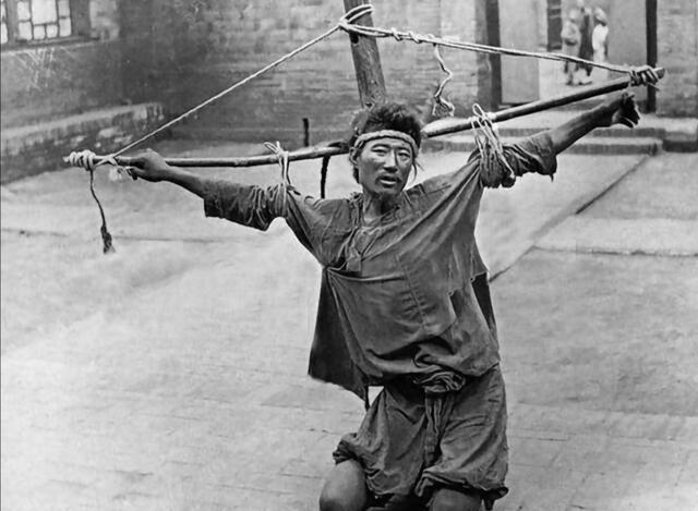 风吹日晒的犯事男子,手脚捆绑,远处还有人围观。男子似乎不屑一顾,对着镜头丝毫没有胆怯。可这种处罚也会让他不堪忍受,几天后就奄奄一息。
