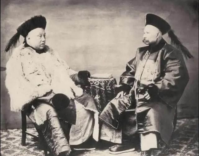 衣锦华丽的官员,一个身穿朝服,一位身着貂皮大衣。二人身材臃肿,耳大面肥,没有电视剧中那般英俊不凡。清末朝廷腐败不堪,八股选士弊端日甚,“捐官”者比比皆是。上任后盘剥百姓,官威十足,百姓苦不堪言。