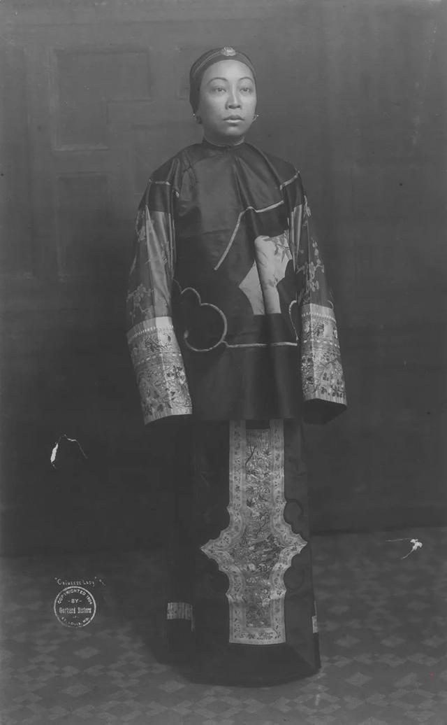 她的着装带有浓厚的晚清时代特色。