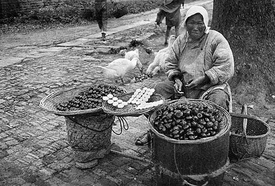 街头卖荸荠的妇女。西德尼·甘博摄于1917-1919年间。