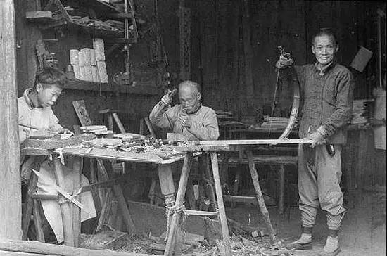 一家细木作坊,祖孙三代都在忙。西德尼·甘博摄于1917-1919年间。