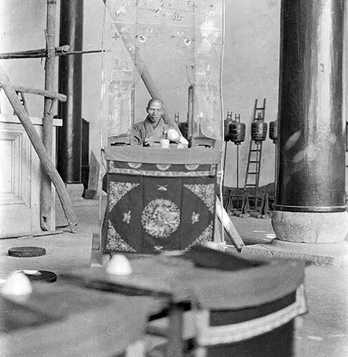 灵隐寺里的解签的和尚。西德尼·甘博摄于1917-1919年间。