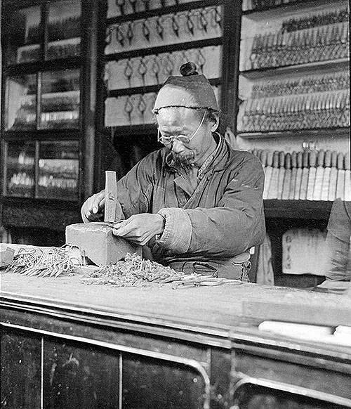 制作张小泉剪刀的工匠。西德尼·甘博摄于1917-1919年间。