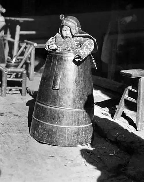 杭州人家养孩子所用的婴儿立桶。西德尼·甘博摄于1917-1919年间。