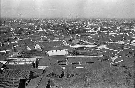 城隍山上俯瞰杭州古城,建筑多是清河坊街一带的房屋。西德尼·甘博摄于1917-1919年间。