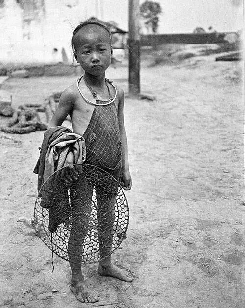 运河杭州段有不少船民世代以船为家,这是一个船民的小男孩。西德尼·甘博摄于1917-1919年间。