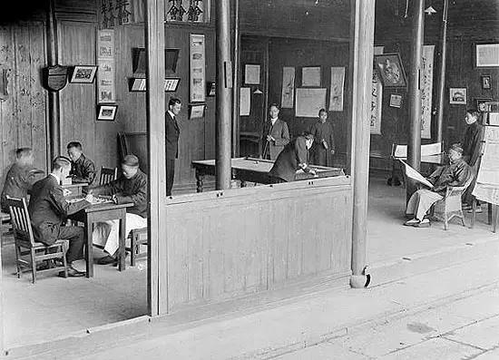 基督教青年会,大方伯的临时会所:打台球的、下棋的、看报的,在当时非常时髦。西德尼·甘博摄于1917-1919年间。