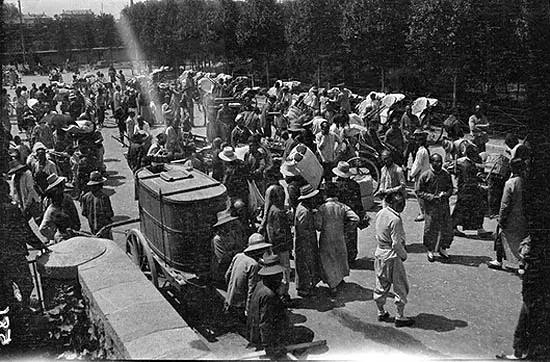 杭州火车站院子里拥挤的人群。西德尼·甘博摄于1917-1919年间。