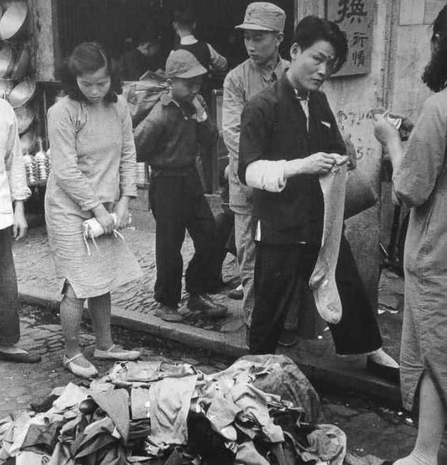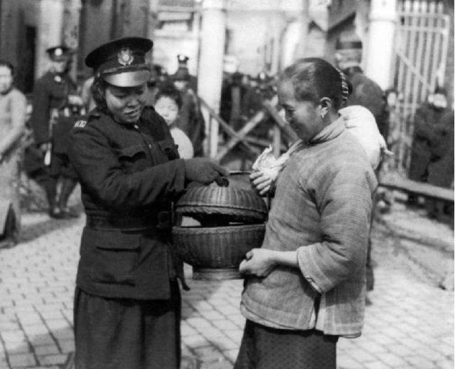 民国时期的巡逻看中摆摊妇人的手提篮