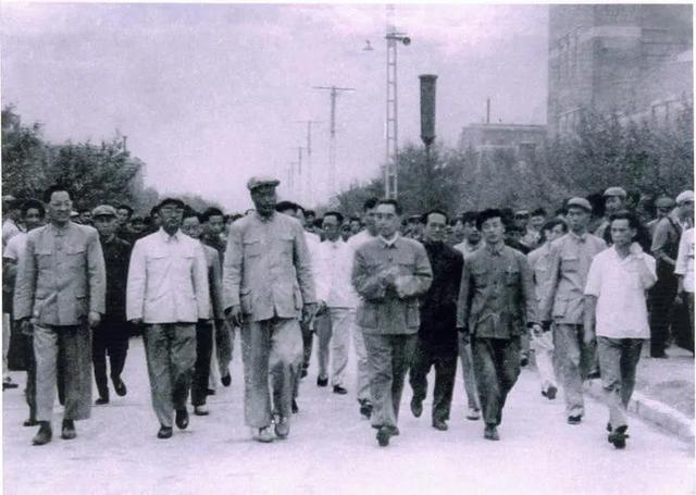 1962年6月20日,赵东宛(前排右二)陪同周恩来总理视察富拉尔基第一重机厂,赵东宛为时任富拉尔基第一重机厂副厂长兼总工程师
