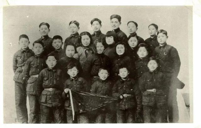 1939年冬 开封孩子剧团在河南开展抗日救亡宣传活动,第三排左一为赵东宛