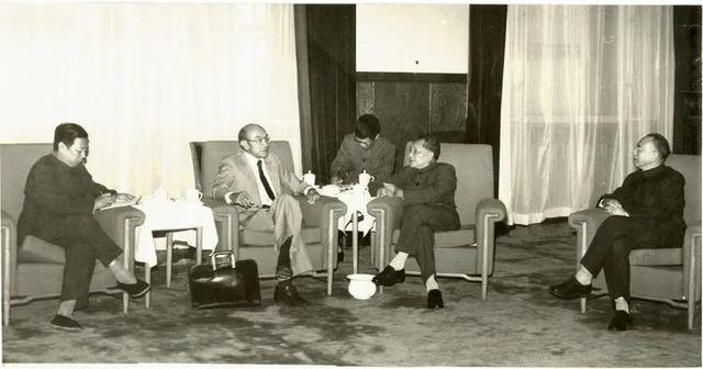 1981年,赵东宛(右一)陪同邓小平同志接见外宾,时任国家科委副主任兼国家计委副主任