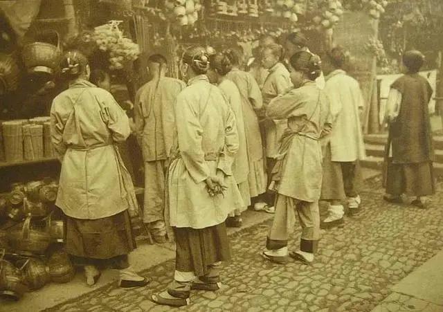 1900年中国的乡村记忆,杂货店前小脚女人们光看不买