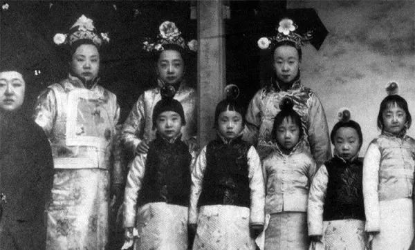 苏完瓜尔佳·幼兰,军机大臣荣禄之女,载沣的嫡福晋,末代皇帝傅仪的生母,后面最右者是瓜尔佳氏,看面容是一位清秀的佳人。