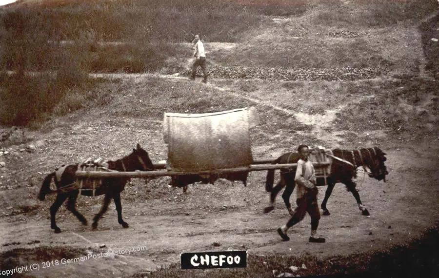1912年,山东烟台的农民与驮轿。