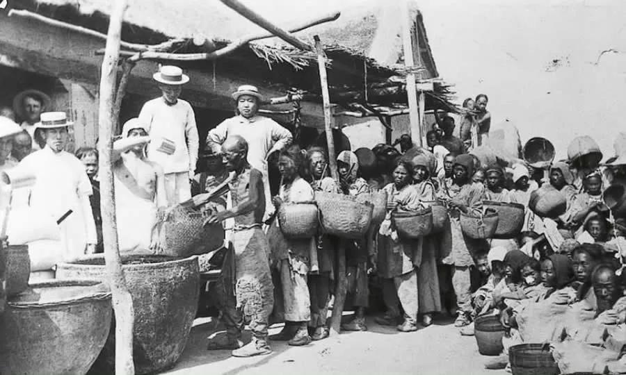 1912年,饥饿的人们排队领取救济粮。