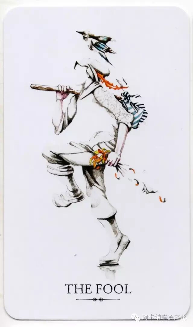 拥有着非凡感觉和灵敏触觉的艺术家Thompson将人类梦幻化,将动物描绘得精明且智慧。Thompson说行者的绘画灵感来源于愚人还未跨出的下一步,这副牌的创作如同他自己的一段旅行。每张牌他都画许多次,直到有个正确的声音对他说:“嘿!亲爱的,可以了。”当他静静地坐在那里尝试倾听每张牌的声音,他渐渐地从一个更深层的角度理解了这些图案的含义。