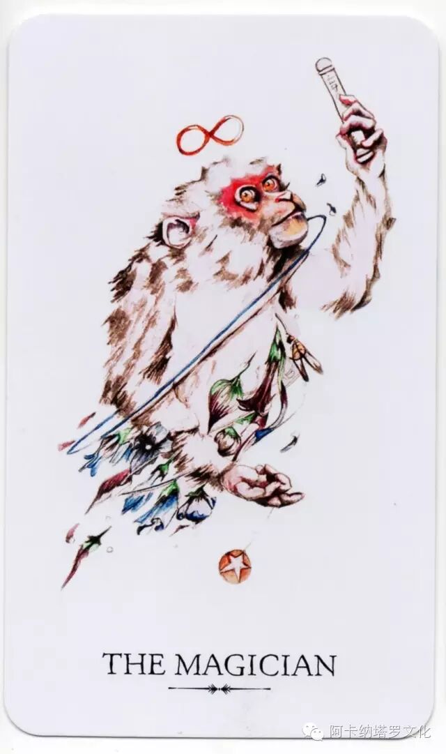 行者的特点是大量被意象化的动物,很多重要的原型表现为动物的形态,比如隐士是以熊为原型,魔术师则是以猴子为原型。这意味着我们要聆听自然的声音并从声音中获得方向,暗示着我们人类有着智慧却没有灵魂。