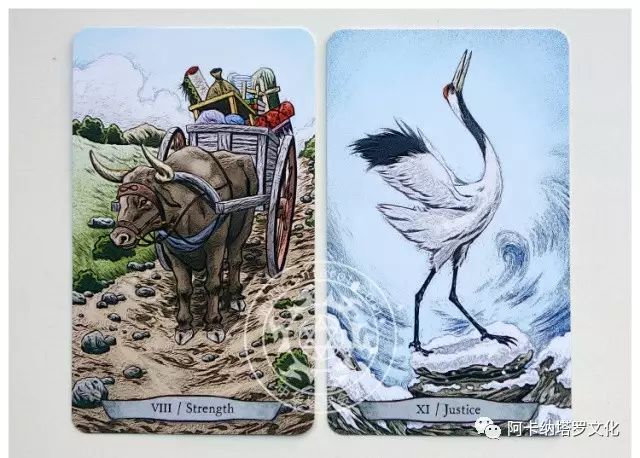 这是一副标准的塔罗牌,总共78张牌,22张大阿卡纳,56张小阿卡纳,牌序和牌名均以伟特牌为标准,8号牌是力量,11号牌是正义,小阿卡纳由宝剑、星币、圣杯和权杖组成,宫廷牌由侍从、骑士、王后和国王组成。