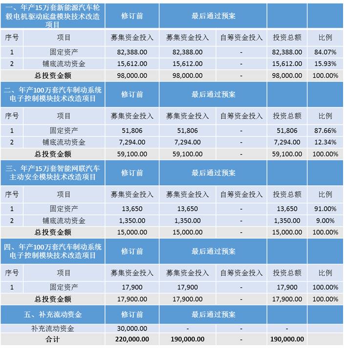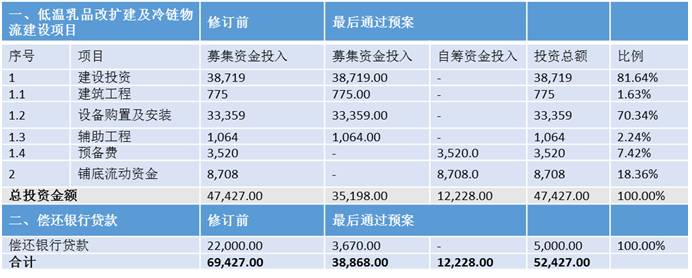 修改要点:减少募集资金规模,删除铺底流动资金。