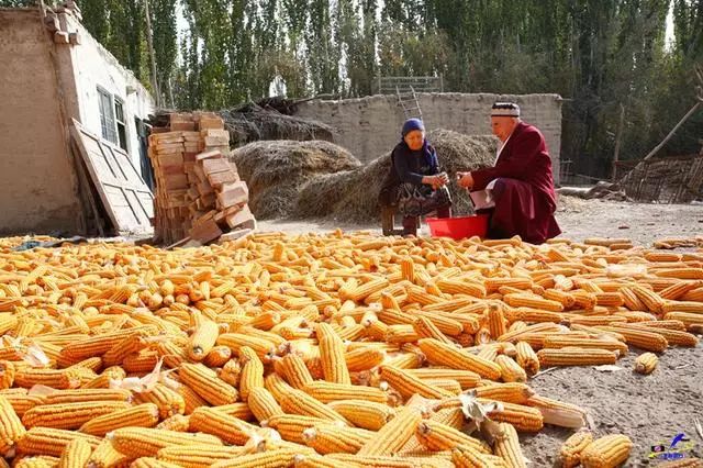 国家级非物质文化遗产传承人艾山·丫丫在他的院子里跟爱人一起剥玉米时,还不忘哼着木卡姆。