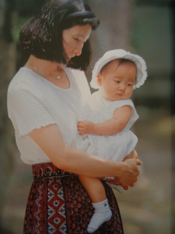 | 94年5月,身穿红衣的纪子, 那时,又怀孕了.大概2,3个月吧 |
