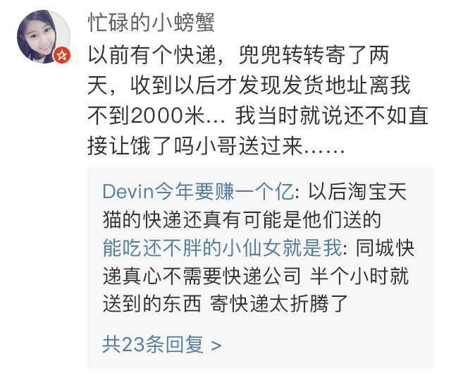 还有的网友发现了新大陆,希望送外卖顺势就把同城的快递领了,既节省了时间,还减少了快递小哥的人力,一举两得,看起来是个好点子。
