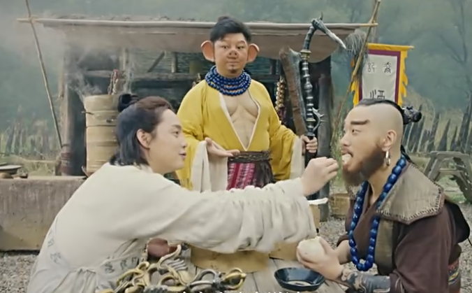 当然,沙僧上线之后,依旧是不改幽默画风,而且因和师傅在一起久了,竟也开始碎碎念起来,人设的升级再次清晰。再看叶浏的表演,通过眼神的诚恳,语气的缓和,神情的掌控,不断强化出耿直又冷幽默的沙僧,就是仅仅坐在那里,憨厚的一笑,那股神色就立刻浮现起来。所以,即便分饰两个角色,即使演技不断调整,但喜感的演技力道依旧均衡自然举重若轻,叶浏整体的喜感节奏,精彩而又深刻。