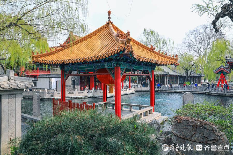 春天来了,泉城一扫灰蒙蒙的天气,变得晴朗起来。趵突泉仿佛得了天地之灵气,靠着泉水的滋润,春花的装扮、柳芽的摇曳、楼台的点缀,把春分之日的趵突泉打扮的处处美景,让人恍惚入得怡人江南。