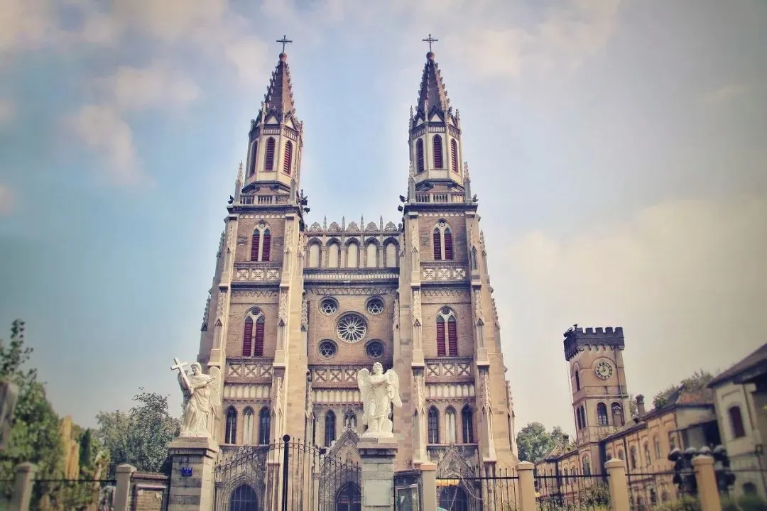 洪家楼教座大约有一百年的历史,显而易见的哥特式建筑风格。