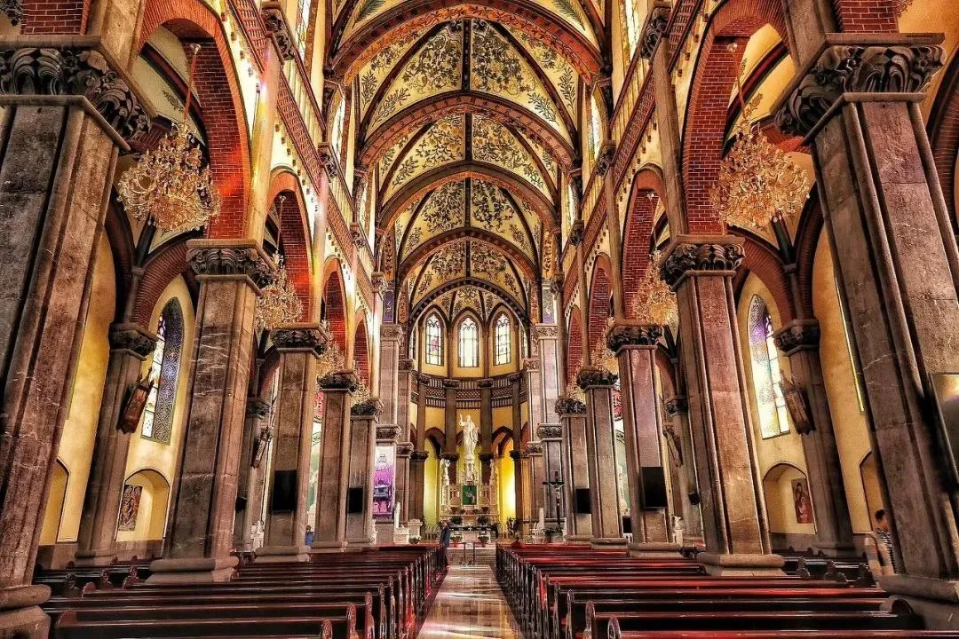 教堂的布局和大多数教堂类似,远远望去,给人庄严雄伟之感。