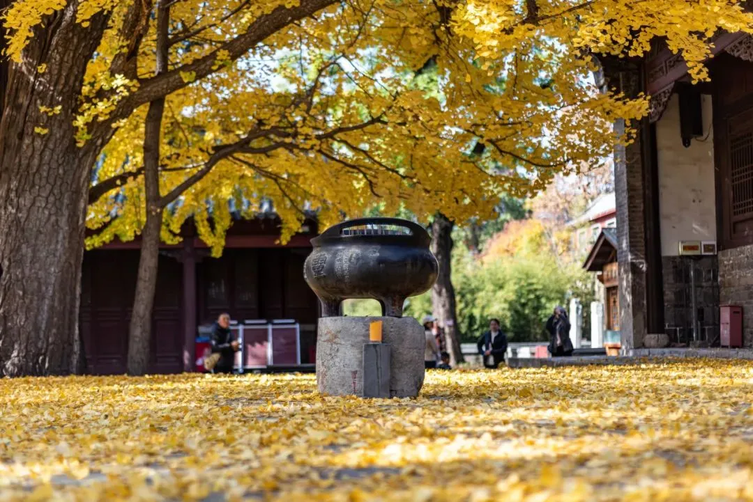 走在银杏叶铺就的青石小路,脚下是落叶沙沙作响,眼中除了溢出的金黄,还有一座座建筑低吟诉说的百年传说。