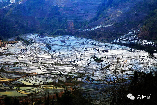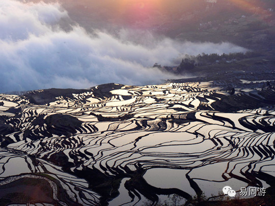 梯田的美离不开水的衬托,元阳梯田每年12月灌水,到了第二年1月正是最漂亮的时候,这期间田地里没有稻子,平平整整的梯田极有层次感,在阳光的照射下更是层层透亮,不需要特别的时机就能遇到很棒的光影效果。