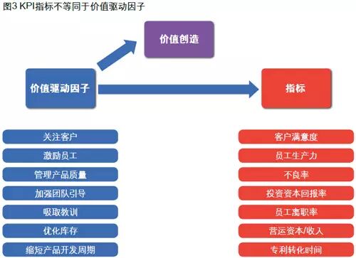 因为与价值驱动因子相关的行动和行为不可直接衡量,企业转而依靠KPI。这种指标充其量只能模糊反映价值驱动因子的管理效果。因此,指标不应被误认为等同于价值驱动因子,正如同我们不能将股价与固有价值混为一谈。