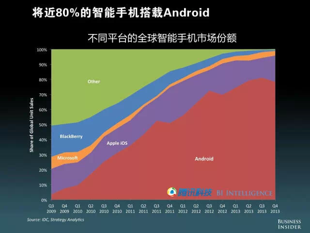 将近80%的智能手机搭载Android