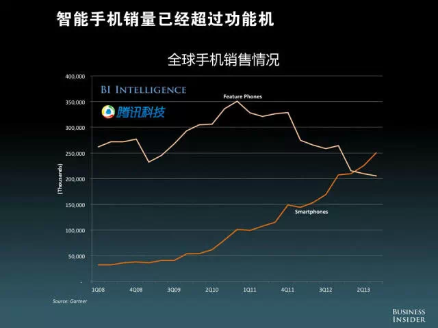 2013年,智能手机出货量接近10亿部