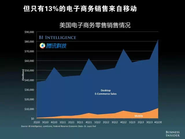 但只有13%的电子商务销售来自移动