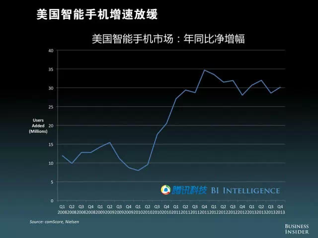 年同比净增幅显示,美国智能手机增速放缓