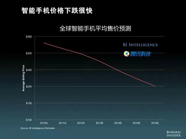 全球智能手机平均售价预测显示,价格越来越低