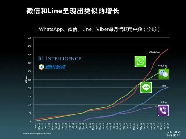 微信和Line呈现出类似的增长