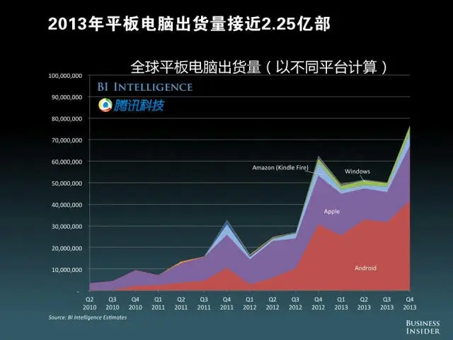 2013年平板电脑出货量接近2.25亿部