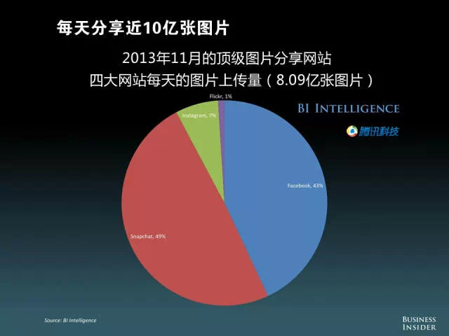 每天分享近10亿张图片,图为2013年11月的顶级图片分享网站,四大网站每天的图片上传量。