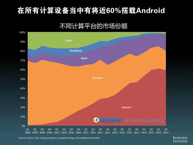在所有计算设备当中有将近60%搭载Android