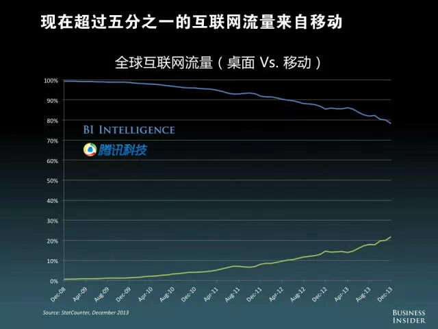 现在超过五分之一的互联网流量来自移动