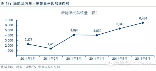 新能源汽车月度销量呈现加速态势,预计年底有望达到月销万辆的水平。今年上半年新能源汽车累计销售2.1万辆,已经超过去年全年的1.7万辆,而且月度销量呈现加速态势,其中6月单月销量已经超过6000辆,预计年底有望达到月销万辆的水平。