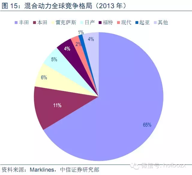 混合动力汽车全球年销量规模约160万辆,丰田、本田具有明显竞争优势。2013年全球混合动力汽车销售160万辆,分品牌看,丰田、本田、雷克萨斯三个品牌的市场份额分别为65%、11%、6%,具有明显竞争优势。