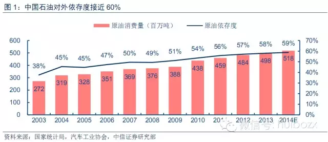 中国原油还能让汽车业“奔跑”多久?一边是中国60%的原油对外依存度,一边是快速增长的汽车保有量和居高不下的平均油耗。中国已连续5年成为全球第一大汽车消费国,假设单车油耗不变,到2018年,中国汽车保有量和车用原油量再翻一倍,中国原油对外依存度或超过70%!中国能源结构多煤少油,新能源汽车可降低石油消耗,但考虑到其偏低的销量占比和普及速度,仍不足以改变中国车用能源结构。