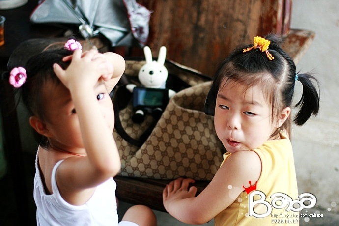 旁边这个酷哥,虽然年龄大,可得管宝叫姑姑。哈哈~~ 你再不爽也没辙,谁让俺们辈分介么高涅