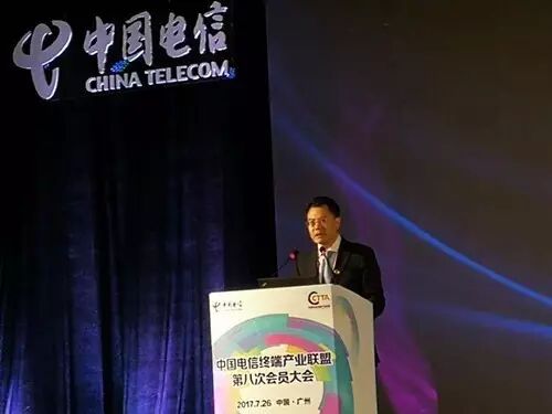 7月26日,在广州举办的“中国电信终端产业联盟第八次会员大会”上,中国电信市场部总经理王国权发表了“携手同行,共赢生态”的主题演讲。